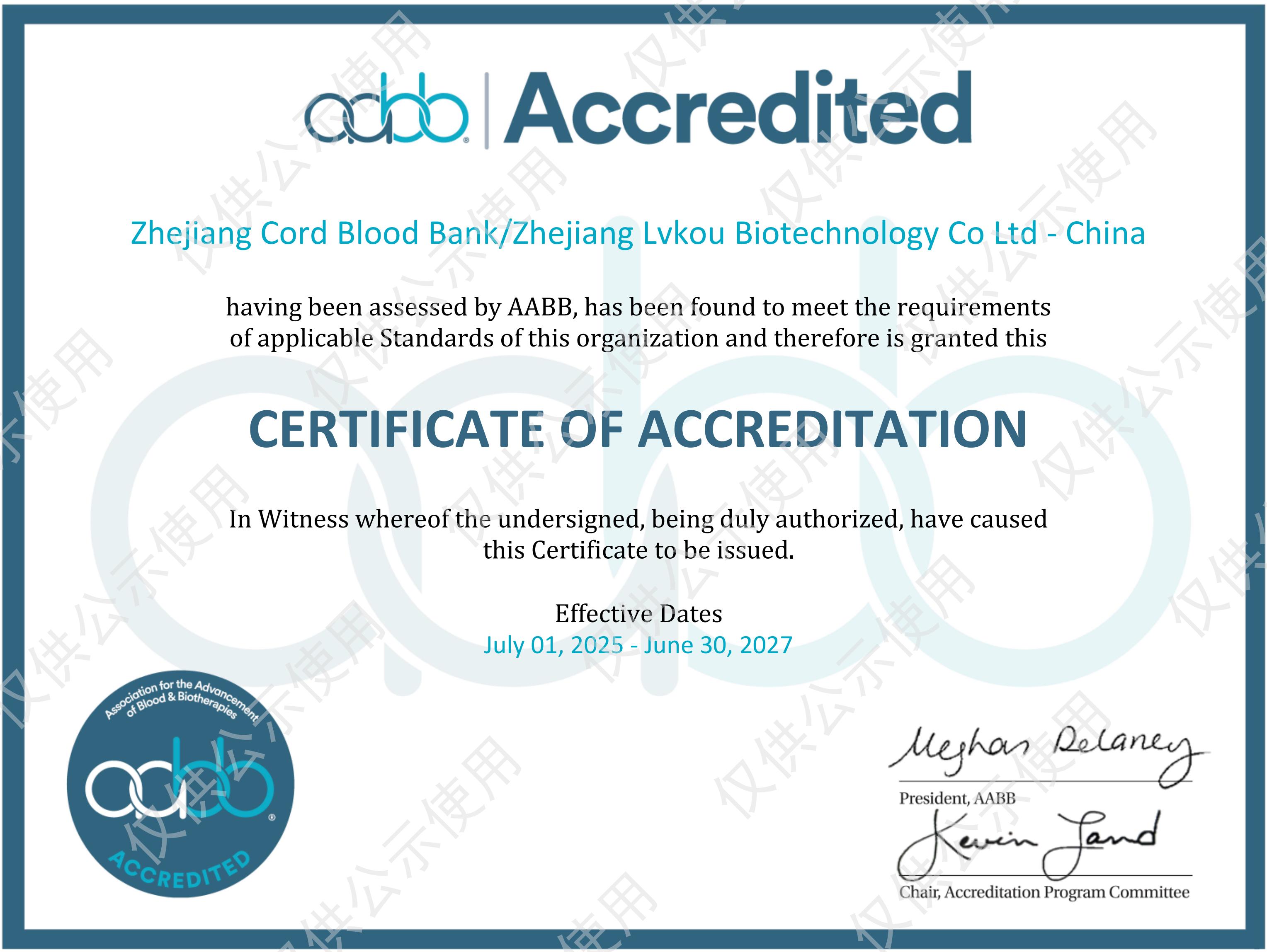 2025年6月,浙江省脐血库再次通过AABB资格认证